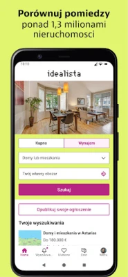 Odkryj najłatwiejszy sposób na znalezienie swojego wymarzonego domu lub szybkie sprzedanie nieruchomości. Aplikacja idealista to kompleksowe narzędzie, które spaja miliony ogłoszeń z nowoczesnymi funkcjami. Niezależnie od tego, czy szukasz mieszkania na wynajem, domu na sprzedaż, garażu, pokoju czy innej nieruchomości, idealista oferuje Ci ogromny wybór i wsparcie w każdym kroku. Uwolnij się od skomplikowanych procesów i doświadcz efektywności, jaką oferuje prawdziwy ekspert rynku.