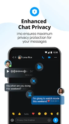 Doświadcz wyjątkowej jakości w każdym połączeniu, zarówno głosowym, jak i wideo, które sprawią, że poczujesz się, jakbyś był tuż obok. Ta aplikacja to także idealne narzędzie do zacieśniania więzi w grupie. Twórz dynamiczne czaty z przyjaciółmi, rodziną, kolegami ze studiów czy ze współlokatorami, dzieląc się wspólnymi chwilami. Z łatwością przesyłaj ulubione zdjęcia i filmy, aby natychmiastowo dzielić się swoimi przeżyciami i wspomnieniami.