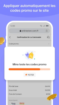 Z Mino, proces znajdowania najlepszych zniżek jest w pełni zautomatyzowany. Wystarczy, że przeglądasz swoje ulubione sklepy mobilnie w Chrome lub korzystasz z ich dedykowanych aplikacji. Dodaj wybrane produkty do koszyka, tak jak zawsze. Gdy tylko w Twoim zasięgu pojawi się potencjalny kod promocyjny, Mino natychmiast Cię o tym powiadomi. Jednym kliknięciem aktywujesz funkcję "Sprawdź kody", a aplikacja Mino automatycznie przetestuje dostępne kupony i wybierze ten, który zapewni Ci największą oszczędność, aplikując go bezpośrednio do Twojego koszyka. Koniec z ręcznym szukaniem i wypróbowywaniem!